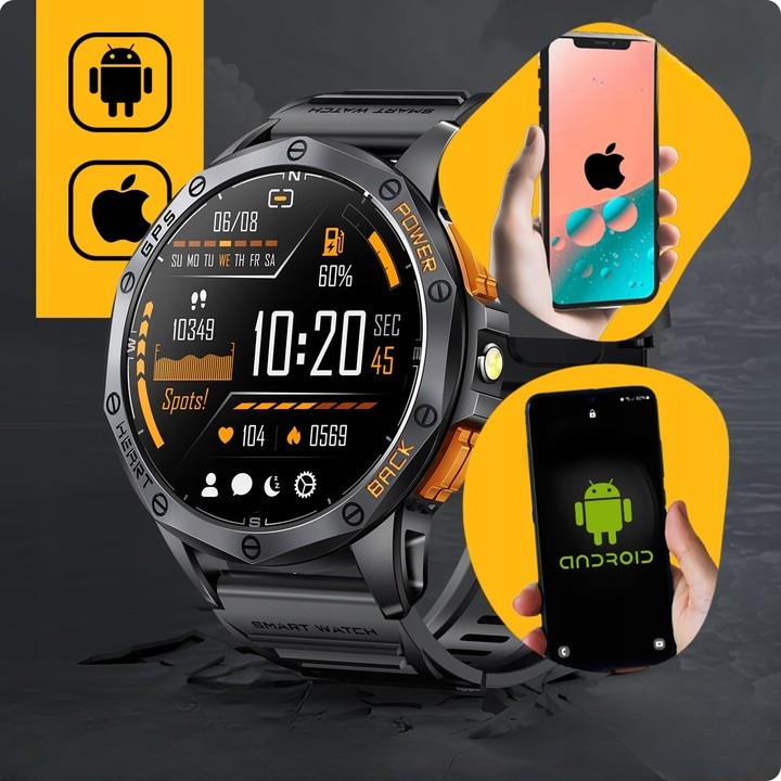 Smartwatch jest kompatybilny z Android, iOS i Windows, oznacza to, że można go sparować i używać z urządzeniami działającymi na tych systemach operacyjnych.