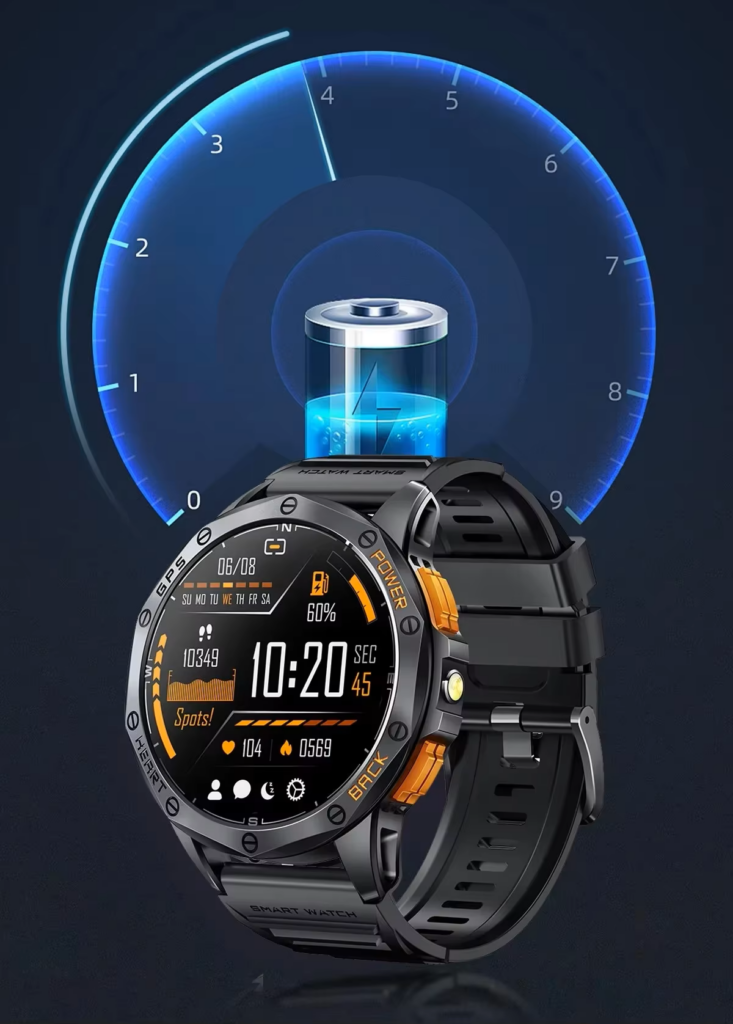 Smartwatch wyposażony jest w pojemną baterię 530mAh, która pozwala na pracę od 5 do 10 dni!