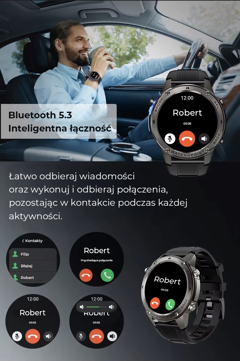 • Kontakty SOS – Możliwość zapisu 5 kontaktów SOS.
