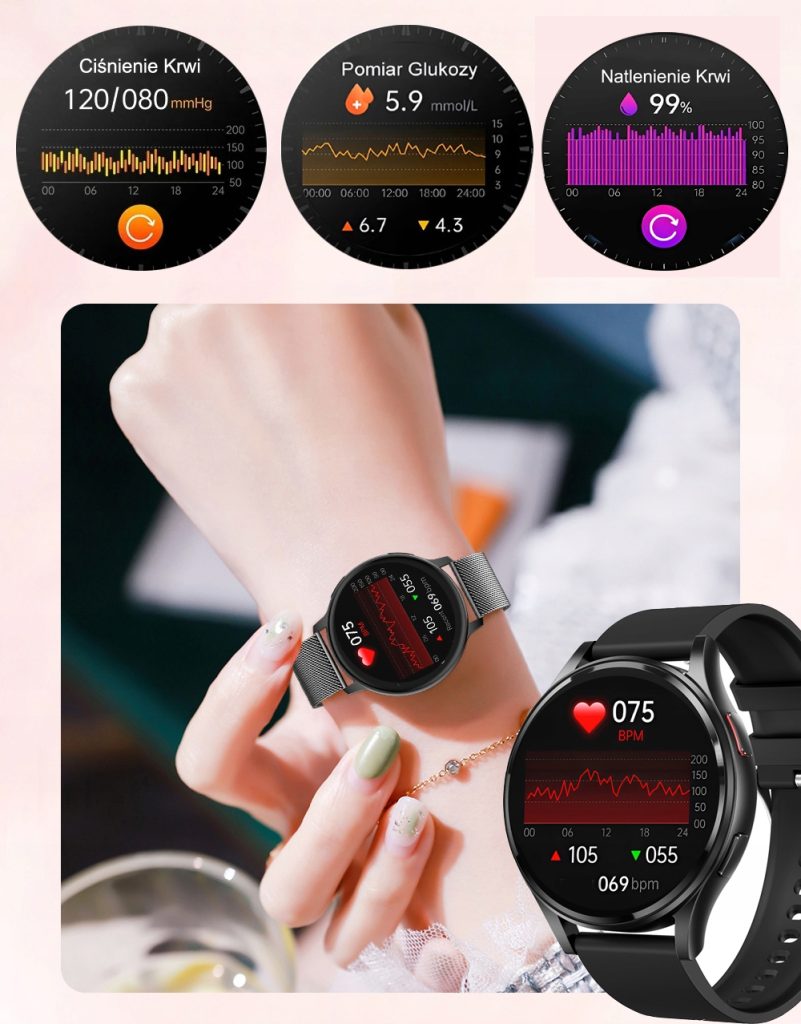 ✅Zegarek Smartwatch Damski AMOLED ELEKTRODA EKG Glukoza HRV