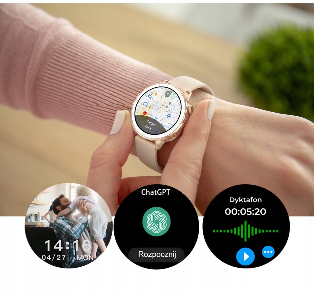 Dostępne aplikacje : Google Maps, Chat GPT, BBC, Giełda, kreator tarcz zegara, tłumacz językowy.