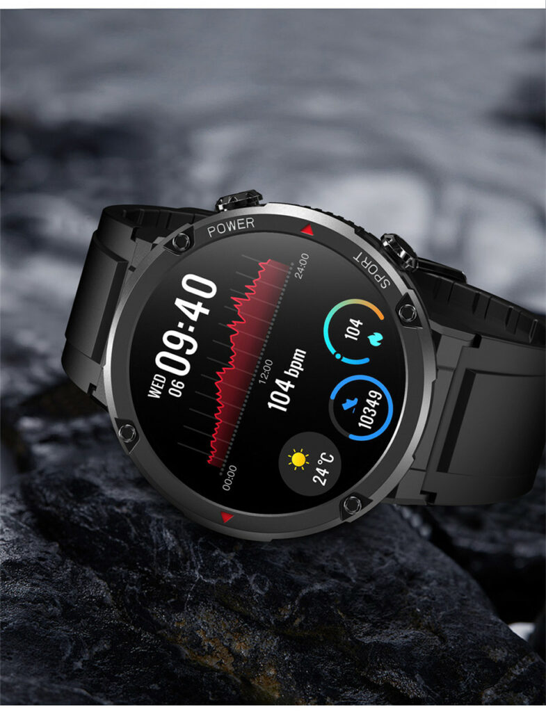 - Duży krystaliczny wyświetlacz 1.62 cala IPS HD z wąską ramką wygląda wyśmienicie na męskim nadgarstku. Jeden z największych wyświetlaczy wśród smart-zegarków.